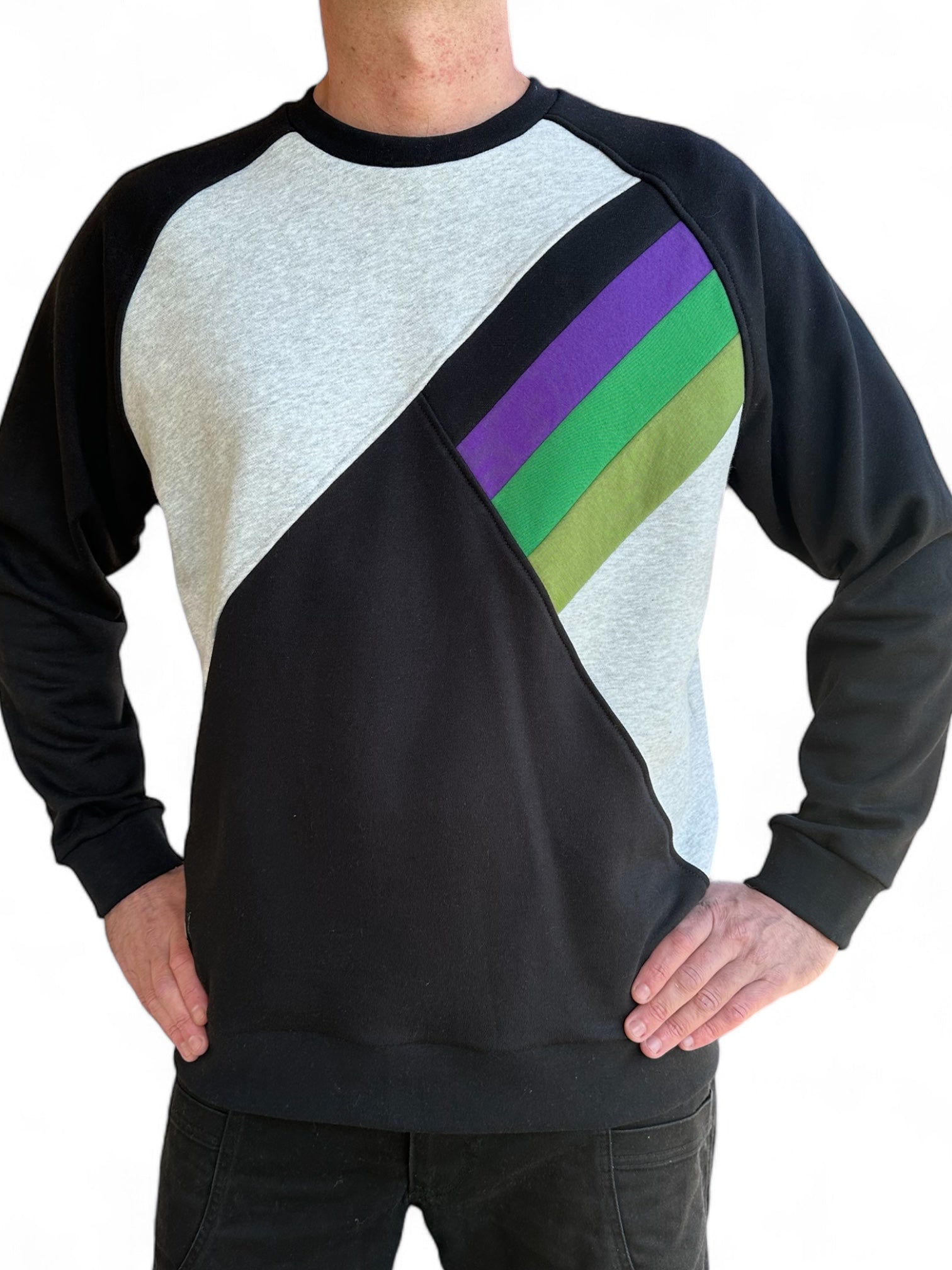 These hand-made sweaters are made from dead-stock cotton fleece. If you don’t see your size it’s possible to request a custom order with a colour combination of your choice (subject to availability).