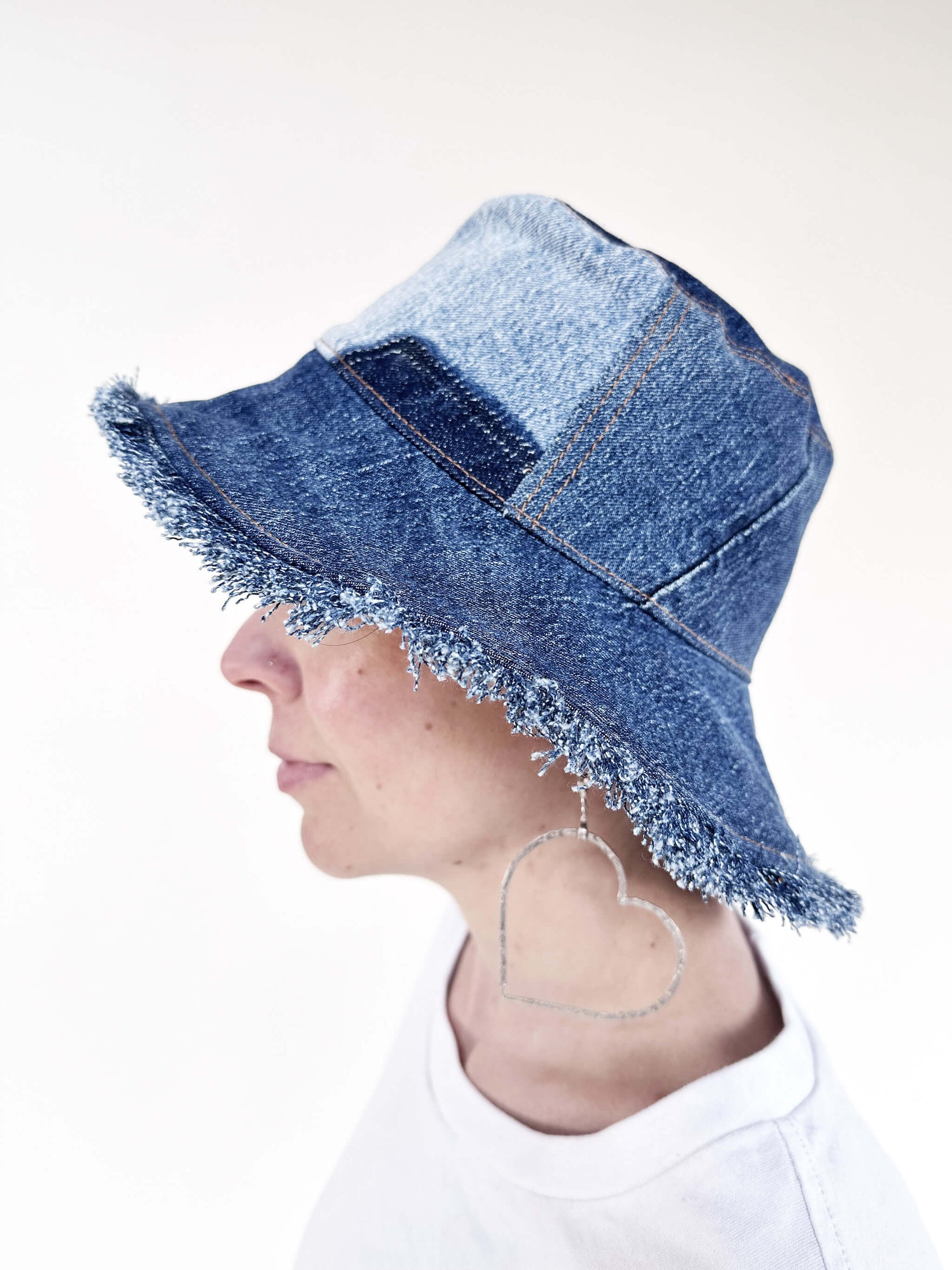 The Nillumbik hat is a reversible denim to vintage patchwork. Mid-brim for all seasons. Each hat features a one of a kind arrangement and is made in Nillumbik. Allow one week for construction. Available in S (53.5cm), M (56cm), L (58.5cm)